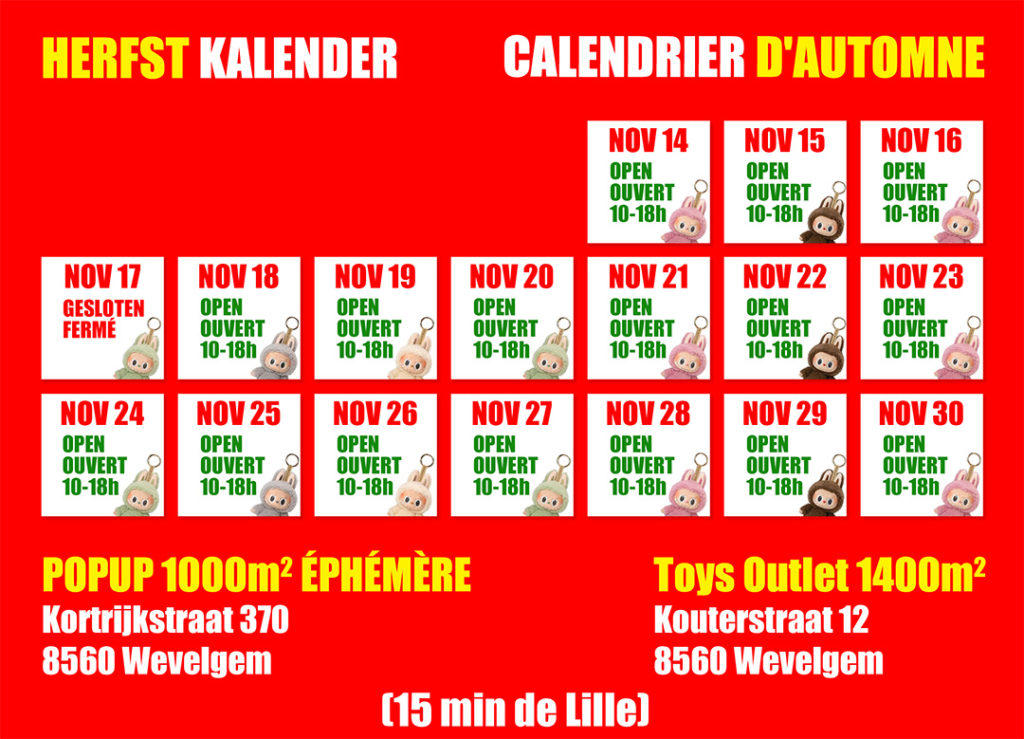 Toys Outlet zal open zijn vanaf 25 september tot en met 25 december.